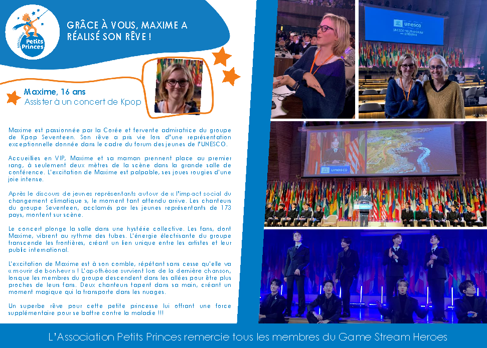 L’Association Petits Princes réalise les rêves des enfants et adolescents gravement malades atteints de cancers, leucémies, certaines maladies génétiques… En vivant ses passions et en réalisant ses rêves, l’enfant trouve une énergie supplémentaire pour se battre contre la maladie.